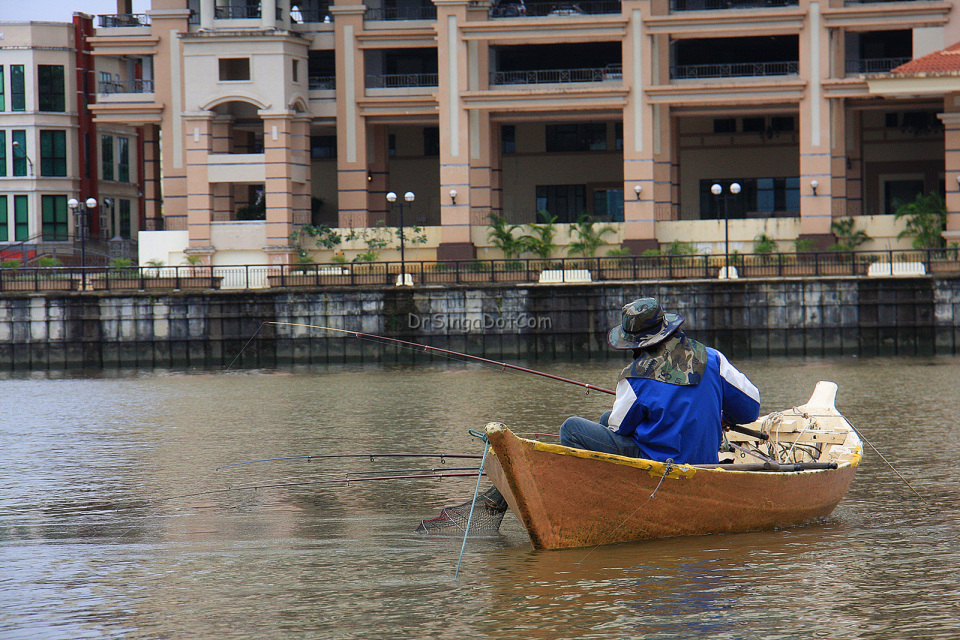 Shot lone pemancing atas sampan with kampung nelayan as backdrop tu my favourite! 🙂