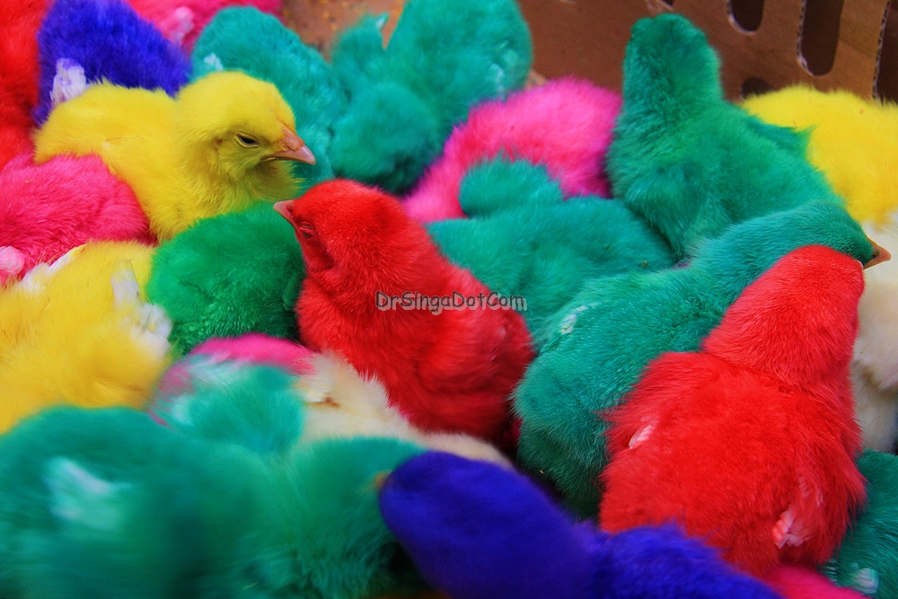 Macam mana diaorg kaler anak2 ayam tu doc? Celup dalam pewarna ke? Huishh.. macam kejam je… I suppose they’ll outgrow the kaler kan.
