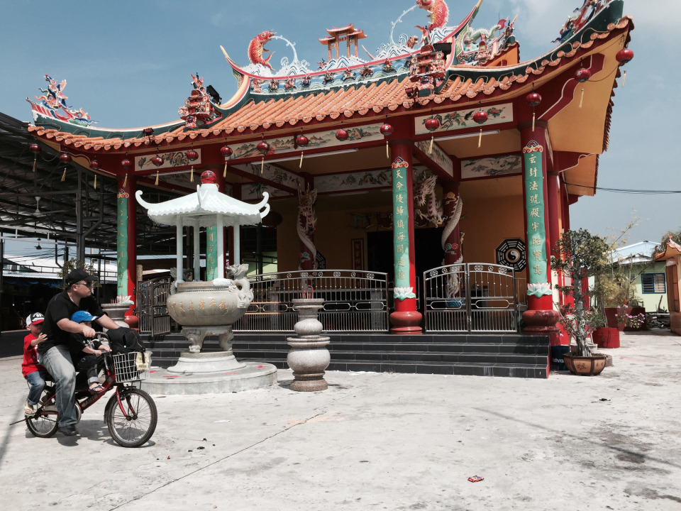 Dah beramai-ramai makan kat tepi Tokong tu..